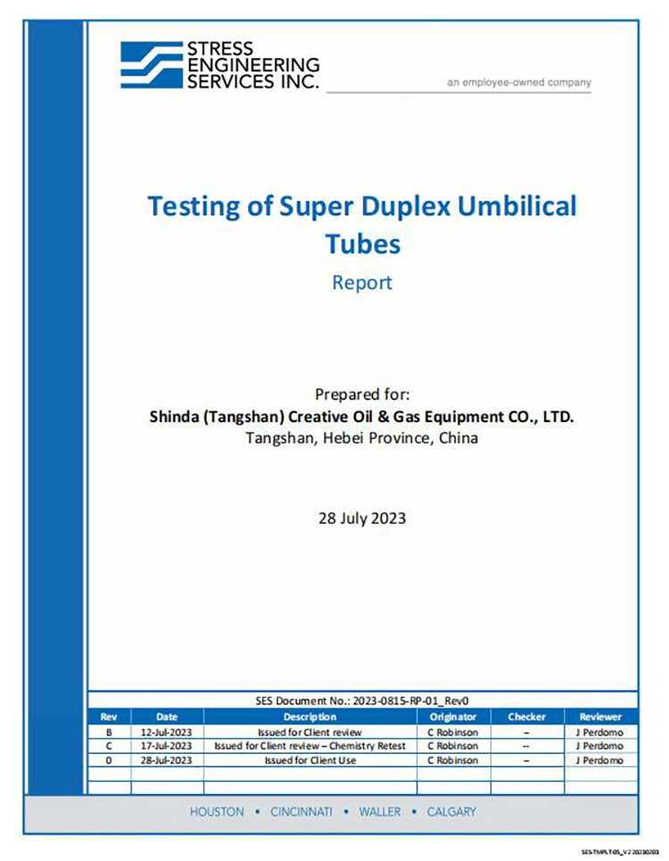 Umbilical tube is to facilitate the connection, transit, and control of the entire underwater facility from the offshore platform. It use super duplex stainless steel 2507, with single 6,000 meters as seamless tubes without girth welding, effectively solve conventional seamless tube potential welding internal burrs and groove corrosion, avoid welding defects like partial welding and lack of weld. The product meet excellent performance in high pressure and corrosion resistance, meeting the demanding operating environments of high temperature and pressure, as well as high concentrations of H2S/CO2.